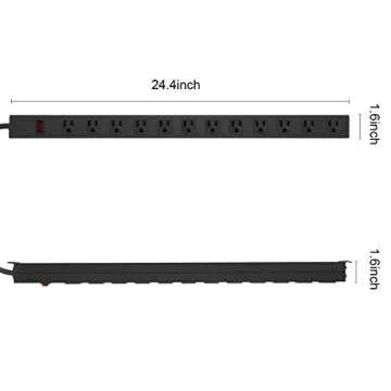 Show more The Wide Spaced Power Strip serves as an essential tool for optimizing your space while efficiently managing multiple electronic devices. With 12 wide spaced outlets, each designed to accommodate large plugs comfortably, this product ensures that you can connect all your devices without the hassle of overcrowding. The center-to-center distance between AC outlets measures approximately 1.65 inches (4.2 cm), allowing ample room for bulky power adapters. Built with a robust 6 ft 14AWG power cord, it provides flexibility and reach to where you need power the most.