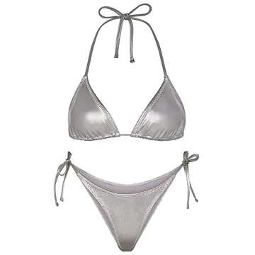 Show more Experience the epitome of summer style with our Metallic String Bikini for Women. This chic bathing suit captures the essence of 80s glamour with its radiant metallic shine and a contemporary twist. Each piece is crafted to provide both comfort and stunning aesthetic appeal, making it a must-have for your beach outings. The brilliant silver color accentuates your sun-kissed glow while ensuring you stand out confidently by the shoreline. Whether you're lounging by the pool or strolling along the beach, you'll exude effortless sophistication.