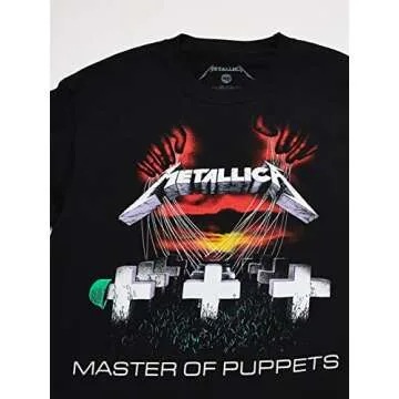 Designed for durability and style, the shirt features a classic short sleeve cut that makes it versatile for all seasons. The vibrant black color serves as a striking backdrop for the captivating Master of Puppets artwork, inviting attention and sparking conversations. With its high-quality manufacturing, you can trust that this t-shirt will withstand the test of time, just like Metallica's legendary music.