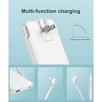 Metecsmart 2-Pack 10000mAh Phone Portable Charger Power Bank, Built in Cable and AC Wall Plug, Fast Slim USB C Charging Battery Pack Travel Essentials Compatible with iPhone, Android, White & Purple