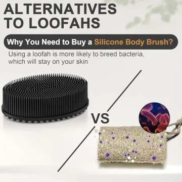 Metene Silicone Exfoliating Body Scrubber with Loop, Body Scrubber for Men and Women, Silicone Loofah for Shower, Soft Silicone Body Scrubber for Shower and Bath Skincare Routine(Black)