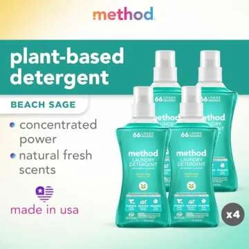 Method Concentrated Laundry Detergent, Beach Sage, 66 Loads (4 Count), 53.5 Fl Oz (Pack of 4)