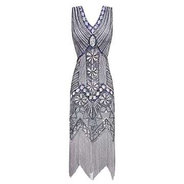 Metme Women's Flapper Dress 1920s V Neck Beaded Fringed Gatsby Theme Roaring 20s Dress for Prom