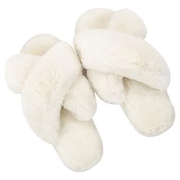 Show moreStep into comfort and style with the Metog Women's Fuzzy Cross Band Slippers. Designed for the modern woman who values chic elegance and coziness, these slippers feature a unique cross strap design that not only adds a fashionable flair but also ensures a secure fit. The open-toe design allows your feet to breathe, preventing overheating while providing warmth and comfort. Crafted with premium materials, these slippers are perfect for lounging around the house or stepping out for a quick errand.