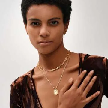 MEVECCO Dainty Gold Initial Necklace for Women 18K Gold Plated Layered Paperclip Link Chain Necklace Personalized Cute Hexagon Letters for Women Everyday Wear Jewelry