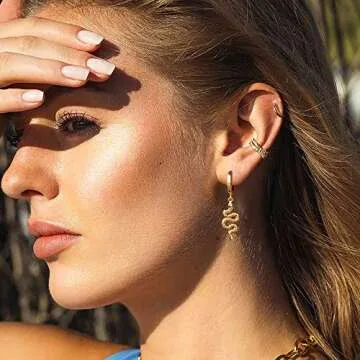 MEVECCO Dainty Gold Snake Necklace Earrings Set,18K Gold Plated Cute Delicate Tiny Snake Chain Necklace,Trendy Minimalist Necklace Earrings for Women