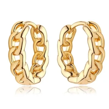 Introducing the exquisite MEVECCO Gold Huggie Hoop Earrings, a statement piece designed for the modern individual who appreciates both elegance and comfort. These stunning earrings feature a 13 mm hoop diameter and a unique chain link design, handcrafted to perfection. Ideal for everyday wear, the soft gold tone adds a touch of sophistication while seamlessly complementing any outfit. Whether worn solo for a chic look or stacked with other hoops for a more...