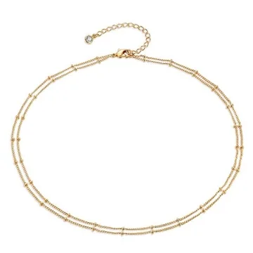 Elevate your jewelry collection with the MEVECCO Gold Layered Satellite Plain Chain Choker Necklace. This dainty handmade boho piece is crafted with 14K gold plating, offering a cute and tiny beaded link chain design that's both delicate and minimalist. Perfect for women who appreciate the finer details in life, this necklace features a 13" - 15" adjustable chain with a lobster clasp, ensuring a comfortable fit for any neckline. Made from 18K gold plated material, heat and pressure bonded to a high-quality...