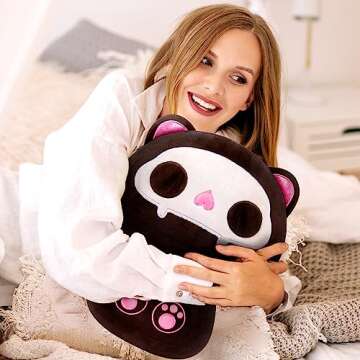 Mewaii 8 Inch Mushroom Plush, Cute Black Cat Plush Pillow Soft Plushies Squishy Pillow, Bone Cat Stuffed Animals Kawaii Plush Toys Christmas Decoration Gift for Girls Boys