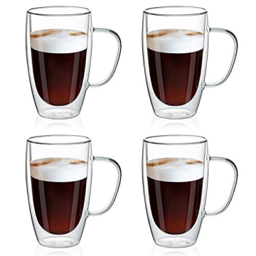 MEWAY 16oz/4 Pack Insulated Glass Coffee Mugs - Keep Drinks Hot or Cold