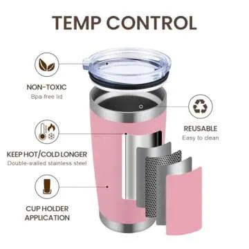 Show more Introducing the MEWAY 20oz Tumbler Cup, your perfect companion for transporting hot coffee or cold drinks with ease and elegance. Crafted from high-quality 18/8 food-grade stainless steel, this tumbler features a double wall vacuum insulation that ensures your beverages stay hot for up to 6 hours and cold for up to 12 hours. Its stunning pink powder-coated finish not only enhances its aesthetic appeal but also provides a comfortable grip while preventing condensation. Durable, stylish, and functional, this tumbler is free from BPA and provides a healthier alternative to plastic cups.