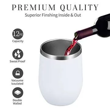 Show more Introducing the MEWAY Stemless 12 OZ Wine Tumbler, a perfect fusion of style, practicality, and innovative insulation technology. Crafted from durable 18/8 food-grade stainless steel, this stylish and vibrant tumbler offers a lightweight yet unbreakable design, making it ideal for any adventure – be it a leisurely picnic, an exhilarating hike, or a cozy night at home. Its double-wall vacuum insulation ensures your beverages stay icy-cold for up to 10 hours and hot for over 8 hours, providing you with refreshing drinks at the perfect temperature.