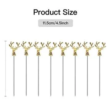 Mewuthede Cocktail Picks,8 Piece Stainless Steel Deer Head Shape Martini Picks Reusable Toothpicks Fruit Picks for Olives, Appetizer, Sandwiches, Cherries (Gold)