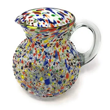 Mexican Hand Blown Glass Pitcher – Confetti Rock Design (84 oz)