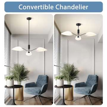 MEXO Modern Glass Chandeliers, Sputnik Chandelier Black Pendant Lighting Fixture Glass Shade Ceiling Light for Dining Room Kitchen Island