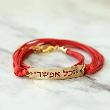 Meydalle Anything Is Possible Hebrew Words Cord Wrap Bracelet, Hakol Efshari String Bracelet, Motivational/Jewish Gift Bracelet, Handmade Gift From Israel (Red and Gold)