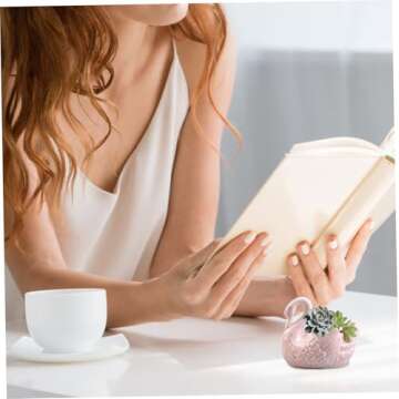 Introducing the Meyrwoy Succulent Plant Pot, a beautifully crafted swan-shaped flower pot that combines functionality with artful design. Measuring at a perfect size of 9.5x9.8cm, this versatile ceramic pot serves multiple purposes—it's not just for plants! With an elegant rosy finish, it’s ideal for adding a touch of charm to your home or office decor. Use it as a delightful storage box for your favorite jewelry, small keepsakes, or even as a unique candlestick holder....