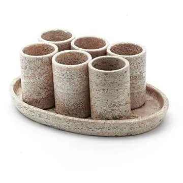 Mezcal For Life Marble Stone Shot Glasses Set, Handmade Unique and Traditional Shot Glasses with Serving Tray, Perfect for Drinking, Decoration, and Gift - (Pack of 6), White