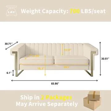 MGH Modern Sofa,Collection Contemporary Velvet Upholstered Sofa Couch with Stainless Steel Base,83.86“ Lx 30.70“ Wx 30.51“ H(Beige)