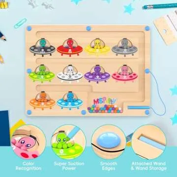 Show moreIntroducing the MGparty Magnetic Color and Number Maze—a captivating Montessori-style wooden toy designed for children aged 3 to 5 years. This enchanting puzzle board features 55 vibrant magnetic beads in ten distinct colors, all neatly arranged in a thoughtfully crafted maze that invites exploration and learning. Children utilize a magnetic wand to skillfully maneuver the beads through the winding paths, enhancing their fine motor skills while simultaneously developing essential color recognition and counting abilities. Each session provides a delightful opportunity for toddlers to engage in play-based learning while enjoying colorful, educational fun!