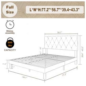 Mhjinuwet Queen Size Bed Frame, Velvet Upholstered Platform with Headboard, Easy Assembly, No Box Spring Needed, Non-Slip and Noise-Free with Strong Wooden Slats