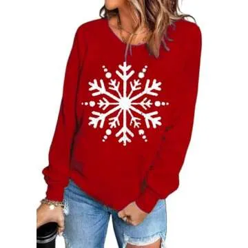 MHTOR Christmas Sweatshirt for Women Cute Snowflake Graphic Tops Funny Long Sleeve Xmas Shirt Winter Holiday Pullover Tops(Large,Red)