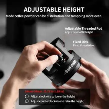 The height adjustable feature via the silicone rotary button allows this tamping station to accommodate various filter sizes, offering significant versatility for different espresso setups.