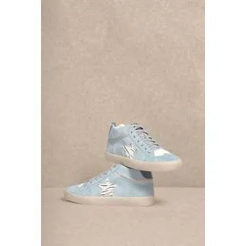 Mi.iM Daisy Rubber Sole Lace-up Glitter Suede Mid Star Sneakers(8.5, Light Blue)