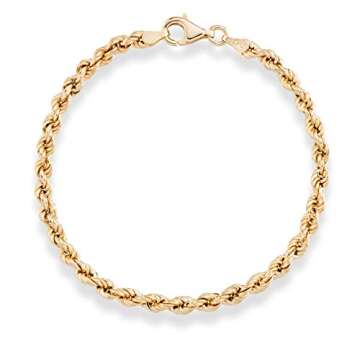Show more Introducing the stunning Miabella 18K Gold Over 925 Sterling Silver Classic Rope Chain Link Bracelet, a beautiful accessory that perfectly merges elegance and durability. Crafted in Italy, this exquisite bracelet boasts a classic 4mm rope chain design that captures the light with its brilliant gold over sterling silver finish. The luxurious 18K gold layer not only enhances its aesthetic appeal but also ensures long-lasting wear without tarnish, making it a staple for both men and women. With a length of 7 inches, this bracelet fits comfortably on most wrists, serving as the perfect complement to both casual and formal attire. Elevate your style with this exceptional piece of jewelry that symbolizes both sophistication and craftsmanship.