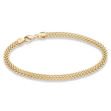 Miabella 18K Gold Over Sterling Silver Italian 4mm Mesh Link Chain Bracelet for Women 925 Italy (7.0 Inches)