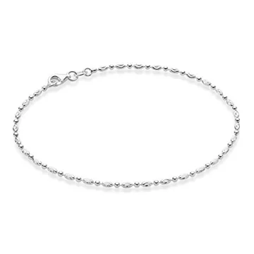 Show more Discover the exquisite Miabella 925 Sterling Silver Diamond-Cut Oval and Round Bead Ball Chain Anklet, a dazzling accessory designed to enhance your summer glamour. This beautiful ankle bracelet effortlessly showcases your shapely legs and sun-kissed skin, making it the perfect companion for any occasion. Crafted from pure 925 sterling silver, it features delicate diamond-cut beads that twinkle in the light, adding a brilliant shine that elevates both casual and formal outfits. Wear it alone for a subtle yet stylish statement, or stack it with other anklets for a trendy layered look.