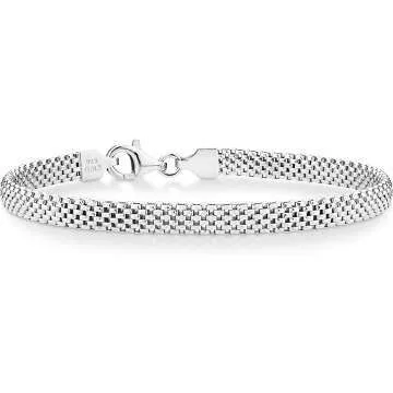 Miabella 925 Sterling Silver Italian 5mm Mesh Link Chain Bracelet for Women