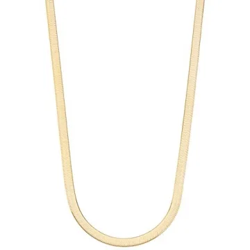 Show more Be enchantingly elegant with the Miabella Solid 18K Gold Over Sterling Silver Herringbone Chain Necklace, the perfect jewelry piece that embodies modern sophistication and classic beauty. This exquisite necklace features silky smooth intertwined polished links that lay flat on the neck, reflecting a radiant shine that enhances any outfit. Expertly crafted from 925 sterling silver and plated with a rich layer of 40 mils 18K yellow gold, this necklace stands out for its durability and luxe appearance. Say goodbye to cheap metals as this unisex piece is hypoallergenic and designed for those with sensitive skin, ensuring that comfort is never compromised.