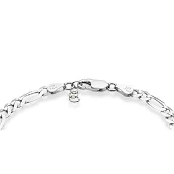Show more Introducing the **Miabella Solid 925 Sterling Silver Italian 5mm Diamond-Cut Figaro Chain Bracelet** – a remarkable blend of modern elegance and classic craftsmanship. This stunning bracelet features flat diamond-cut beveled links that create a radiant shine, transforming any attire into a statement of style. At a slim width of **5mm** (3/16 inches), this piece is both durable and comfortable, making it suitable for everyday wear. Whether you’re dressing up a casual t-shirt or adding sophistication to a formal outfit, this minimalist design is a versatile addition to your jewelry collection.