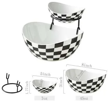 Miamolo Tiered Serving Bowls Chip and Dip Serving Set, Checkered Serving Bowl with Stand, Ceramic Appetizer Serving Dishes Serving Platters and Trays for Parties Entertaining