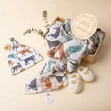Miaoberry 100% Organic Cotton Baby Muslin Swaddle Blanket Set|Cream Tiger| Gender Neutral for Boys Girls|Yellow Mustard Orange Sun Rays| Hospital Newborn Receiving Blanket |Newborn Unisex