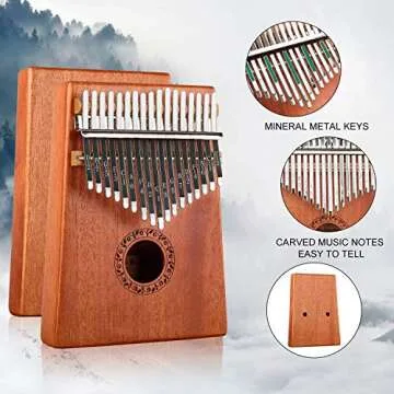 Show more Introducing the perfect instrument for music lovers of all ages – the 17 keys thumb piano, or kalimba, crafted with high-quality materials that resonate with beautifully rich sounds. This handmade kalimba features ore steel bars that enhance your auditory experience, allowing you to enjoy an array of music, from pop and folk to classical and African tunes. Its unique design not only captivates the senses but also makes it a joy to play. The portable size means you can easily carry it wherever you go, making it an ideal companion for performances, parties, or simply relaxing at home.