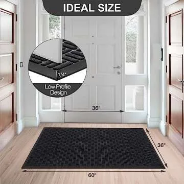Introducing the Mibao Front Door Mat, a heavy-duty, stylish solution for maintaining a clean entryway! Measuring 61.5" x 36", this durable welcome mat is designed to trap dirt and moisture from shoes as you enter your home. Crafted from high-quality absorbent polypropylene fabric, its innovative double layer technology quickly absorbs both moisture and dirt, ensuring your floors remain pristine and dry. With a sleek black color and modern design, it not only functions exceptionally well but...