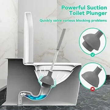 powerful toilet plunger with a robust 360° deep cleaning brush, all