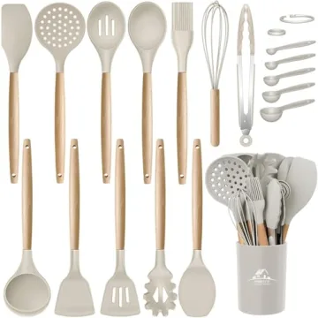 MIBOTE 17-Piece Silicone Kitchen Utensils Set with Wooden Handles - BPA Free