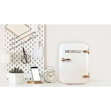 Mica Beauty Mini Skincare Refrigerator - 4 Liter Compact Thermo Electric Cooler and Warmer for Bedroom, Office, and Travel