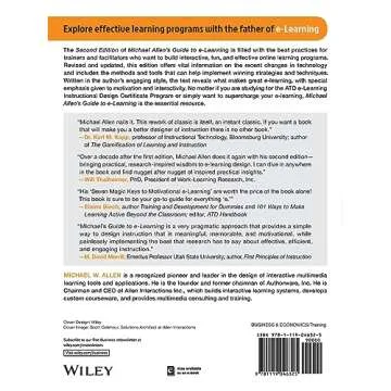 Show more Discover the ultimate resource for designing and delivering cutting-edge e-learning experiences with Michael Allen's Guide to e-Learning. This essential guide is not just a book; it's a comprehensive toolkit that empowers instructional designers and corporate educators to create engaging, interactive, and effective learning programs that captivate employees and enhance workplace performance. Written by the renowned expert in the field, Michael Allen, this guide dives into the nuances of interactive learning, offering actionable strategies that suit any organization, regardless of size or industry.