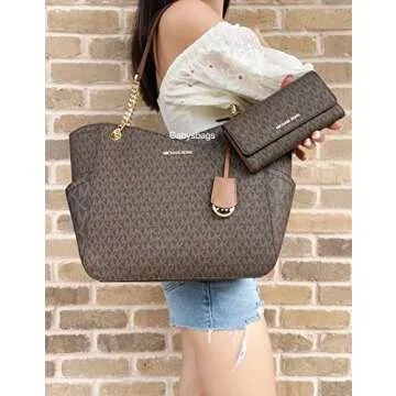 Michael Kors Jet Set Travel Large Chain Shoulder Tote bundled with Trifold Wallet (Brown MK 2021)
