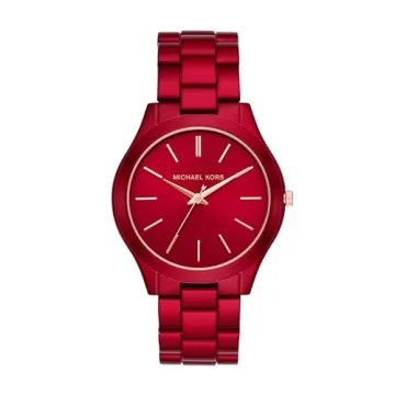 Show moreIntroducing the stunning 42mm Slim Runway Watch, a striking timepiece that beautifully blends style and functionality. Crafted with precision by the renowned Michael Kors brand, this watch showcases a captivating red sunray dial accented by rose gold-tone numerals and stick indexes, making it not just a watch but a statement piece that brings elegance to every outfit. With its round 42mm stainless steel case complemented by a meticulously designed mineral crystal face, this watch ensures scratch resistance and long-lasting durability. More than just a fashion accessory, it's engineered for accurate timekeeping using its reliable quartz movement and three-hand analog display, guaranteeing that whether you're at the office or out for a night on the town, the Slim Runway watch promises to keep you punctual while elevating your style.