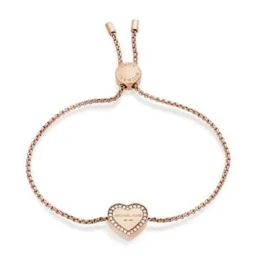 Show moreThe Michael Kors Jewelry collection is a celebration of elegance and timeless beauty, crafted to perfection for those who appreciate luxury without compromising on quality. This exquisite slider bracelet showcases a stunning polished rose gold-tone heart charm, surrounded by a dazzling pavé crystal halo that catches the light beautifully. Each piece is made from hypoallergenic materials, including stainless steel and brass, ensuring both longevity and comfort for everyday wear.