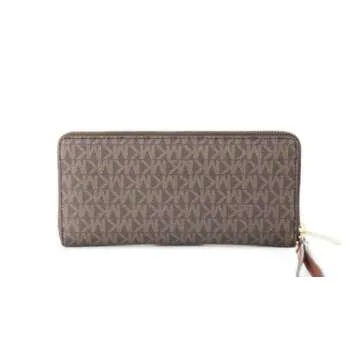 Show moreIntroducing the exquisite Michael Kors Women's Zip Around Wallet, the ultimate accessory that every fashion-forward individual deserves. This stunning bifold zip-around continental purse wallet is not just an accessory; it's a statement piece. Crafted with precision, it showcases a rich dark brown logo monogram pattern PVC outer complemented by a luxurious saffiano leather interior. With striking gold-tone metal hardware, this wallet emanates sophistication and guarantees durability, making it a lasting addition to your wardrobe.