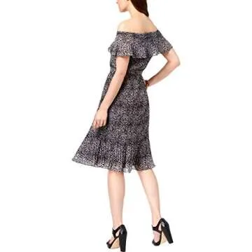 Michael Michael Kors Women's Pleated Off-The-Shoulder Dress (M, Black/White)