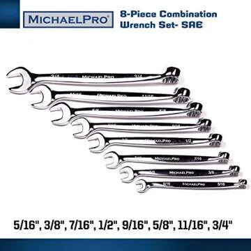 MichaelPro MP001014 8-piece SAE Combination Wrench Tool Set, Patented Spiral Grip Design Spanner Set, 15 Degree Offset Wrench Set at Open End, SAE Wrench Set for Mechanic