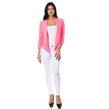 Michel Women's 3/4 Sleeve Blazer Light Weight Chiffon Casual Open Front Cardigan Jacket Work Office Style with Plus Size