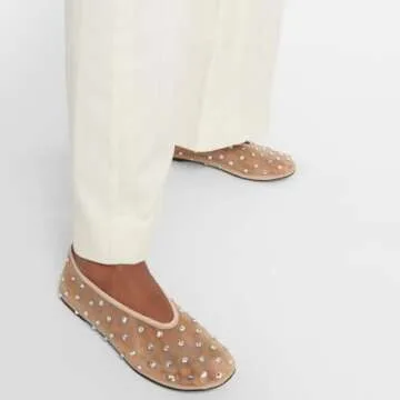 MICIFA Mesh Ballet Flats for Women Crystal Rhinestone Flat Shoes Round Toe Sparkly Ballerina Shoes Low Heel Glitter Casual Wedding Dress Mary Jane Flats Apricot